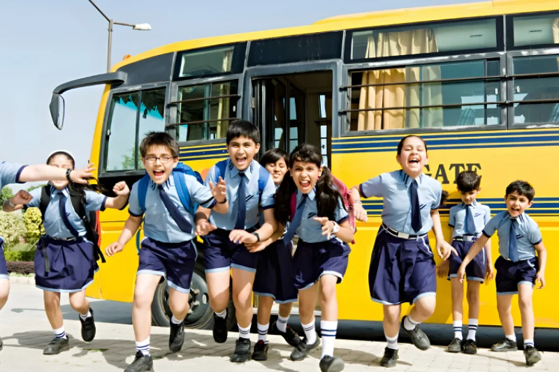 The need for safe passage of each child to school and back home is of paramount importance to us. To ensure this we provide school buses as per standards and safety features. The buses are fully secure and safety, GPS tracking, automatic safety doors, Speed control device, CCTV cameras, students Biometric. We have professionally trained and certified drivers. For supervision and monitoring a bus attendant is on board throughout the journey. Apart from this, all staff on the bus is well trained in first aid and emergency management. We also have an instant messaging system in bus for intimating parents about the students boarding from school and home.